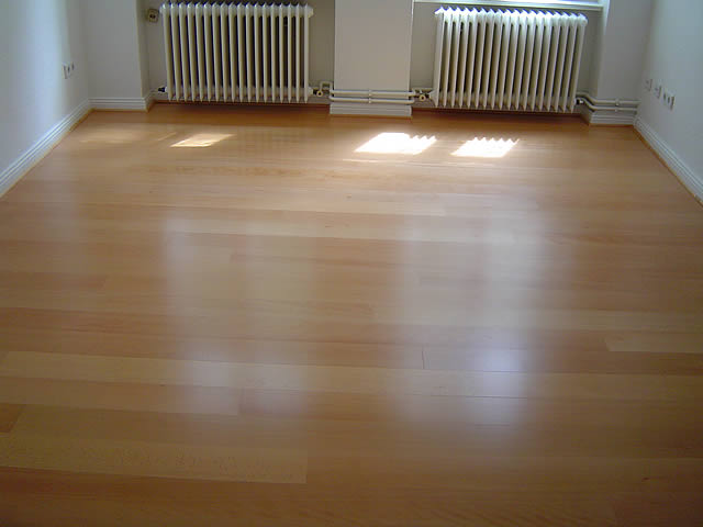 Altbau-Wohnung – Verlegung von Kieferdielen, verdeckt geschraubt auf nivellierter Balkenlage, geschliffen und mit wasserbasiertem Parkettsiegel auf Basis von Polyurethan-/ Acryldispersionen dreifach halbmatt versiegelt.